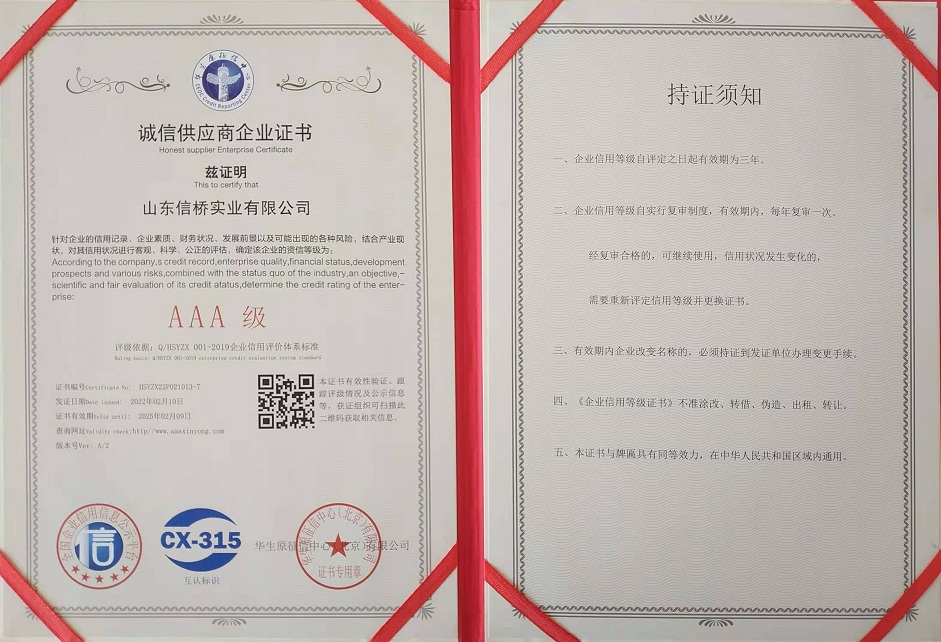 誠信供應(yīng)商企業(yè)證書